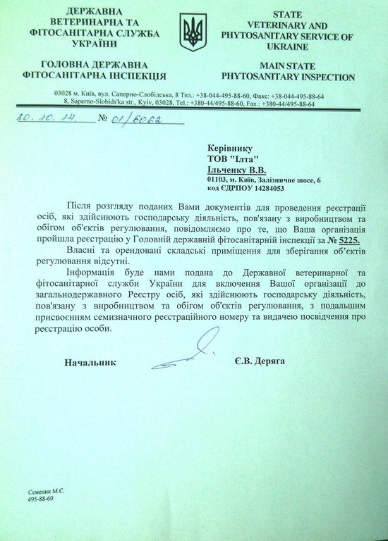 Реєстрація у фітосанітарній (карантинній) службі