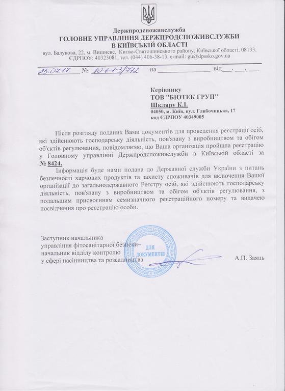 Регистрация в Фитосанитарной службе ООО БИОТЕК ГРУПП
