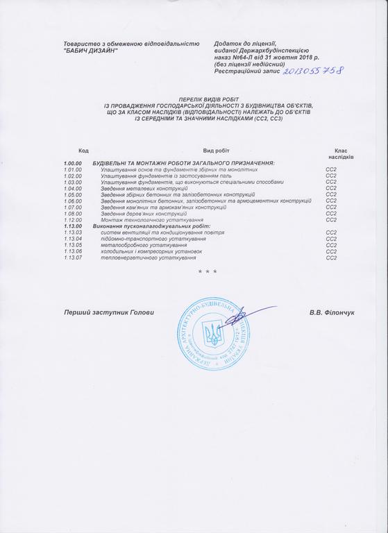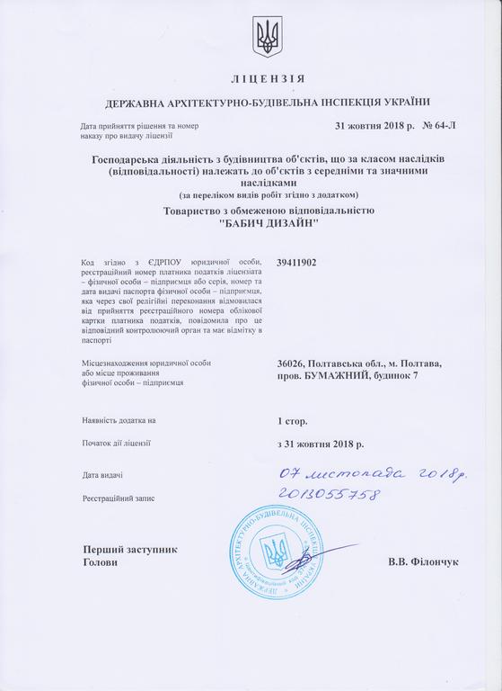 Лицензия ТОВ "БАБИЧ ДИЗАЙН", Полтава