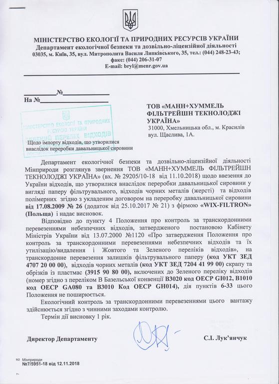 Висновок Мінприроди "Зелений перелік відходів"